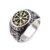 Caption: Stainless steel Viking ring engraved with the Helm of Awe compass – Norse symbol of protection and victory